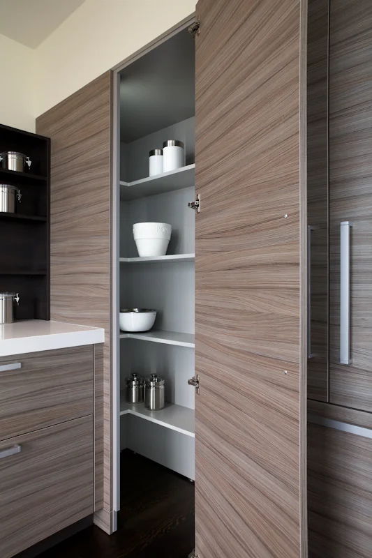 Full-height corner pantry optimizes accessible cubic volume in corners.